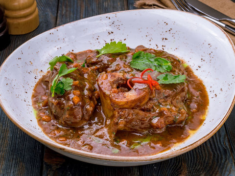 Ingrédients : Porc, Eau, Carotte, Oignon, Tomate, Vin blanc, Ail, Huile de canola, Fines herbes, Zeste de citron, Sucre, Épices, Sel.