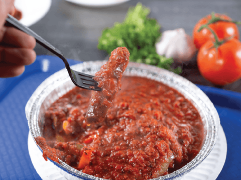 Ingredients: Ground Veal, Veal stock, Kalamata olives, Tomato paste, Water, Corn starch, Green peppercorns.